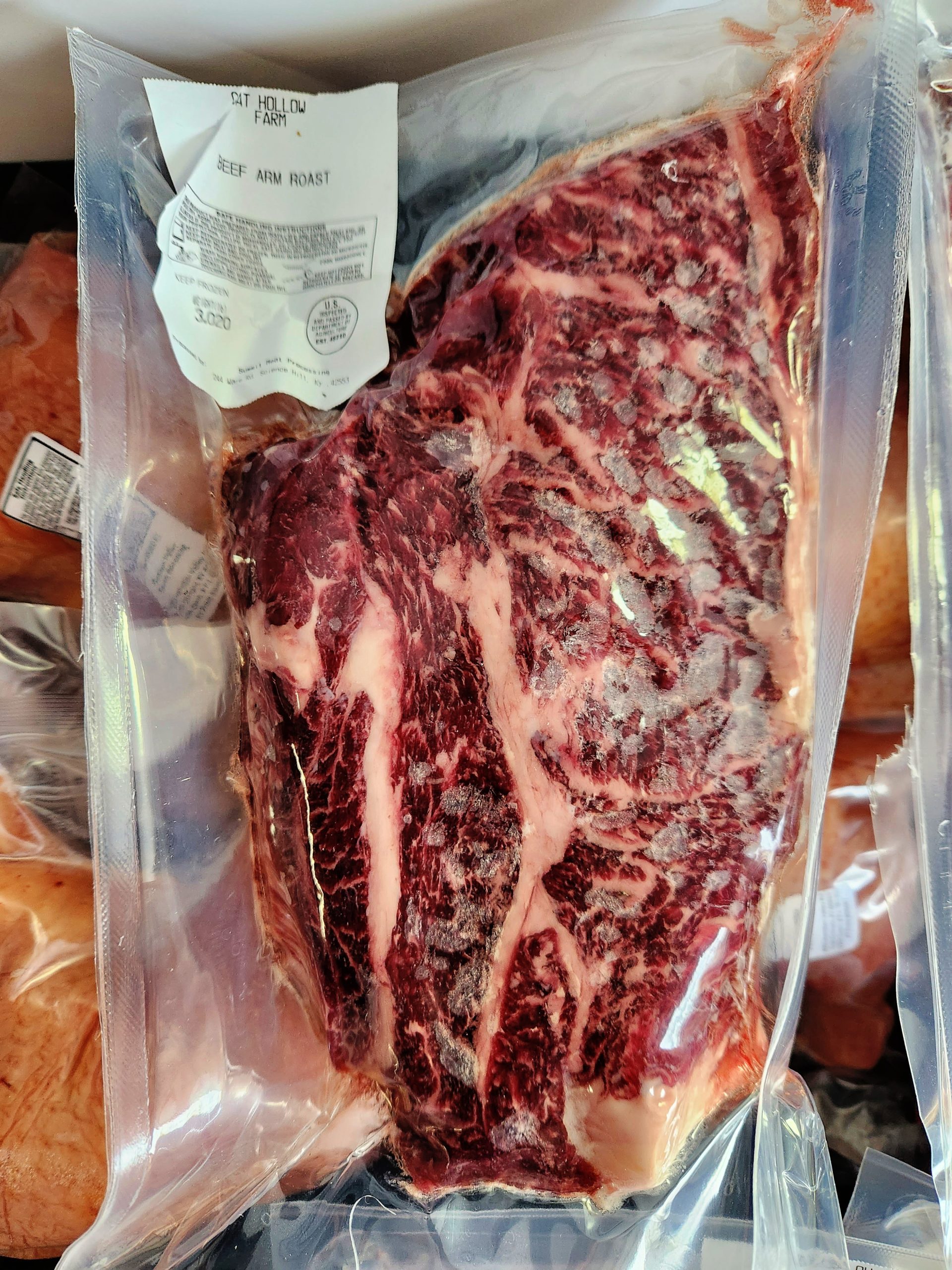 Our Arm Roast is a lean, flavorful cut from the shoulder. Vacuum sealed. Perfect for slow cooking or braising. Rich in taste and fork-tender when cooked low and slow.