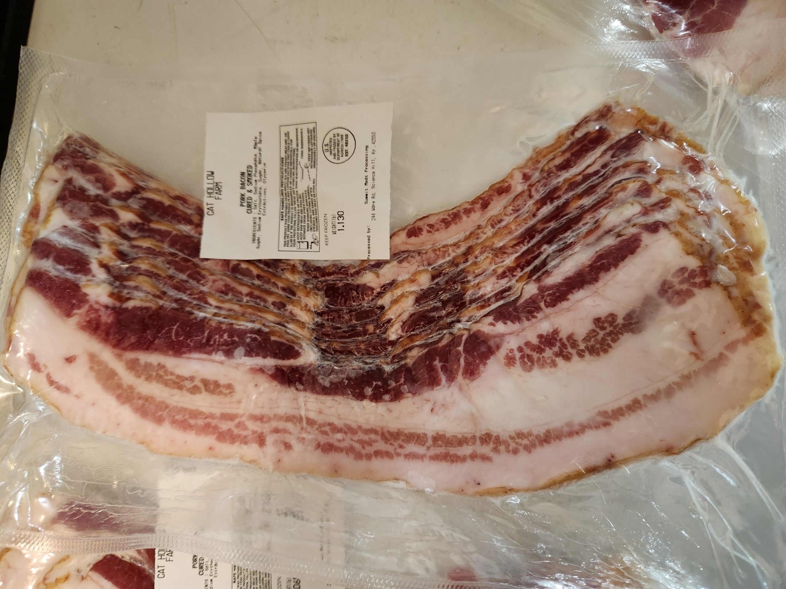 Indulge in the exceptional quality of our USDA pasture-raised cured bacon. This approximately 1.1 lb package features premium bacon strips that are naturally cured and bursting with rich, smoky flavor that sets them apart from conventional bacon. Sourced from animals raised on open pastures, our bacon delivers authentic, complex taste that keeps customers coming back for more.